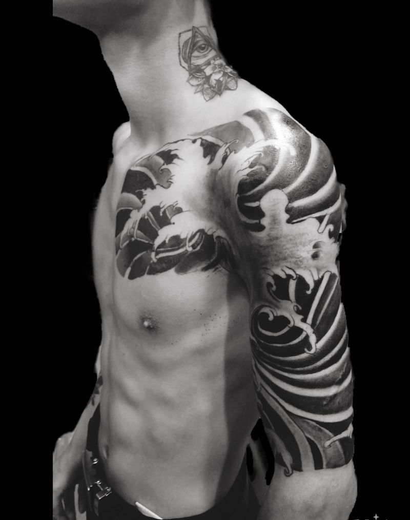 传统浪花半甲纹身图片_肩部胸部老传统纹身图案