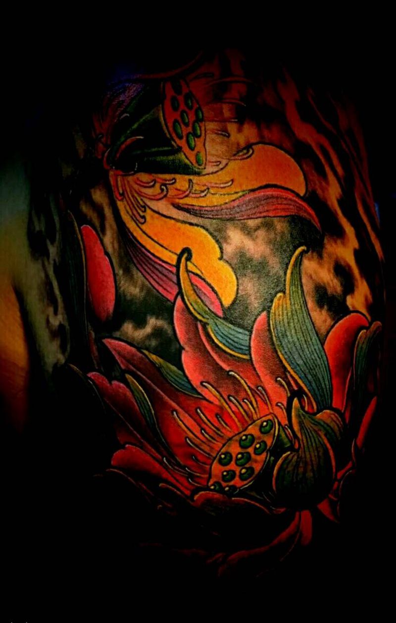 一组15张莲花纹身手