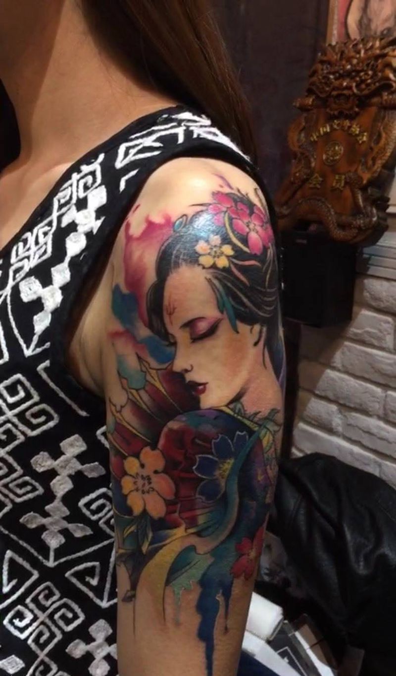 当前位置: 首页 >江苏省无锡市纹身店-神针刺青纹身图案>大臂艺妓纹身图片