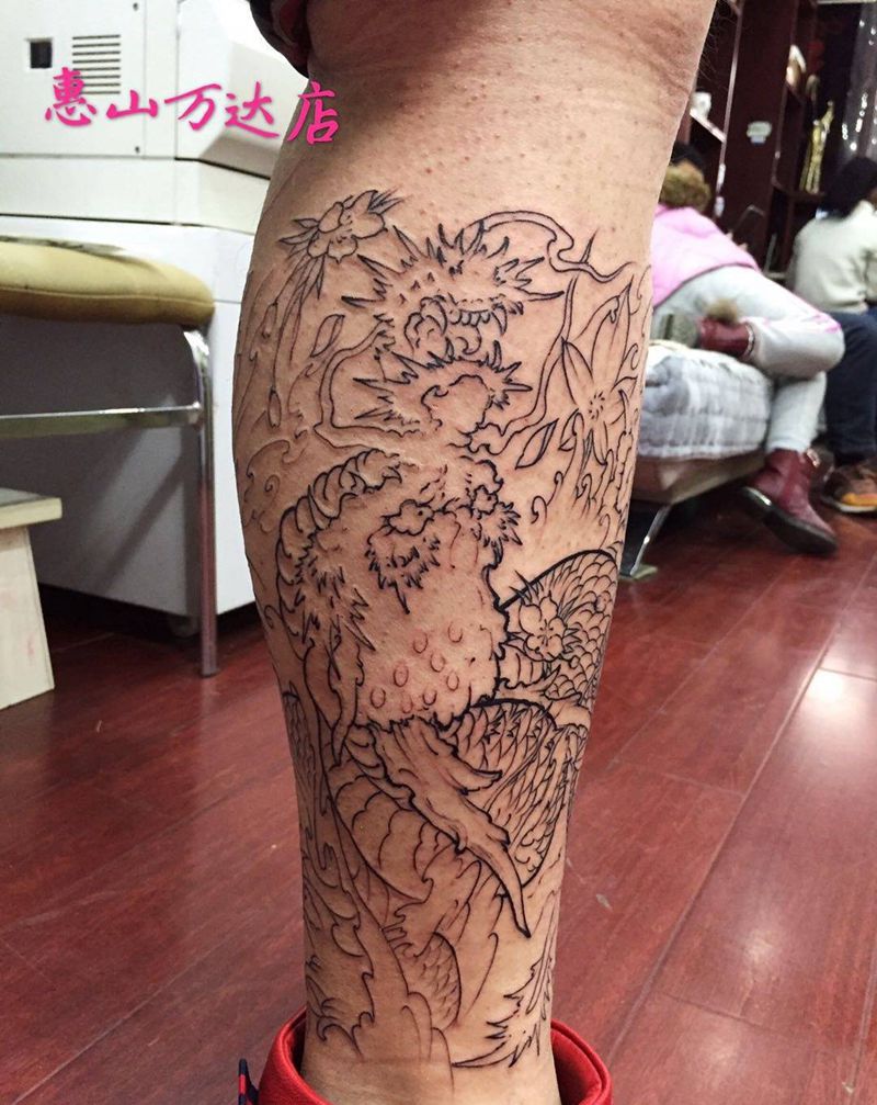 • T网红王老大花腿龙纹身图片_腿部新传统纹身图案