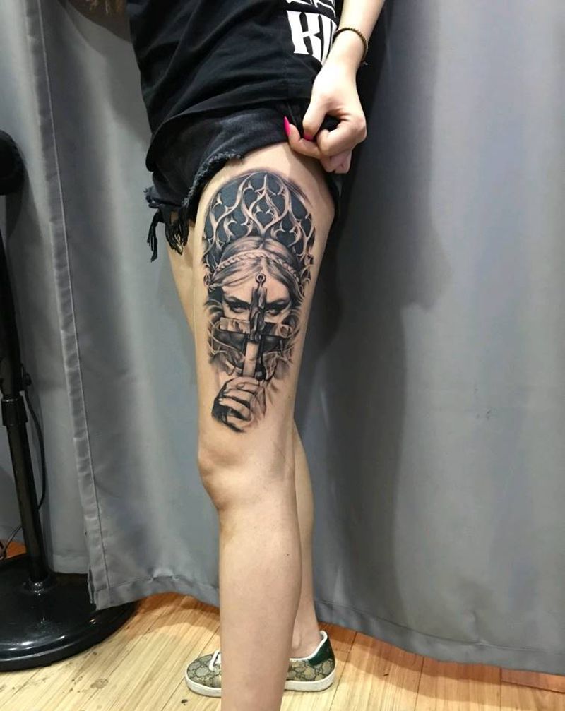 当前位置: 首页 >江苏省无锡市纹身店-南朝刺青纹身图案>欧美花腿纹身图片_腿部欧美写实纹身图案
