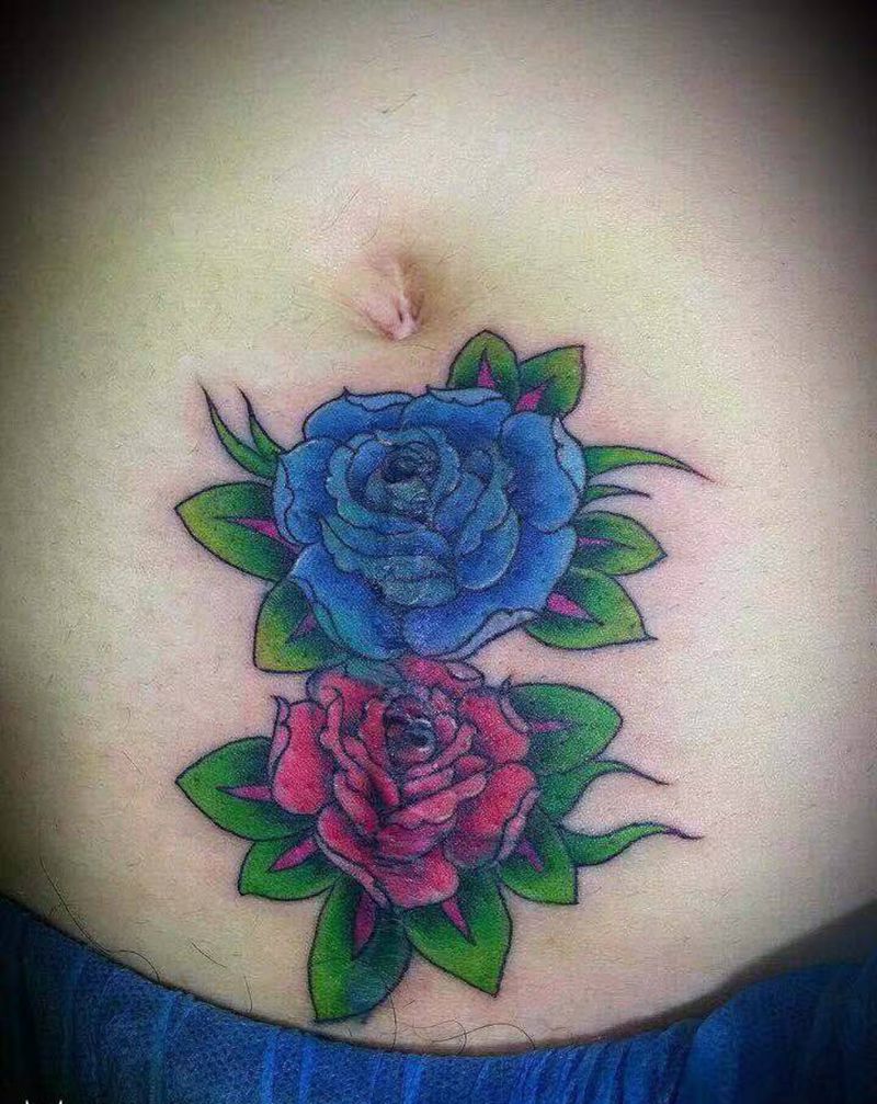 • 时尚性感的腹部莲花纹身图案