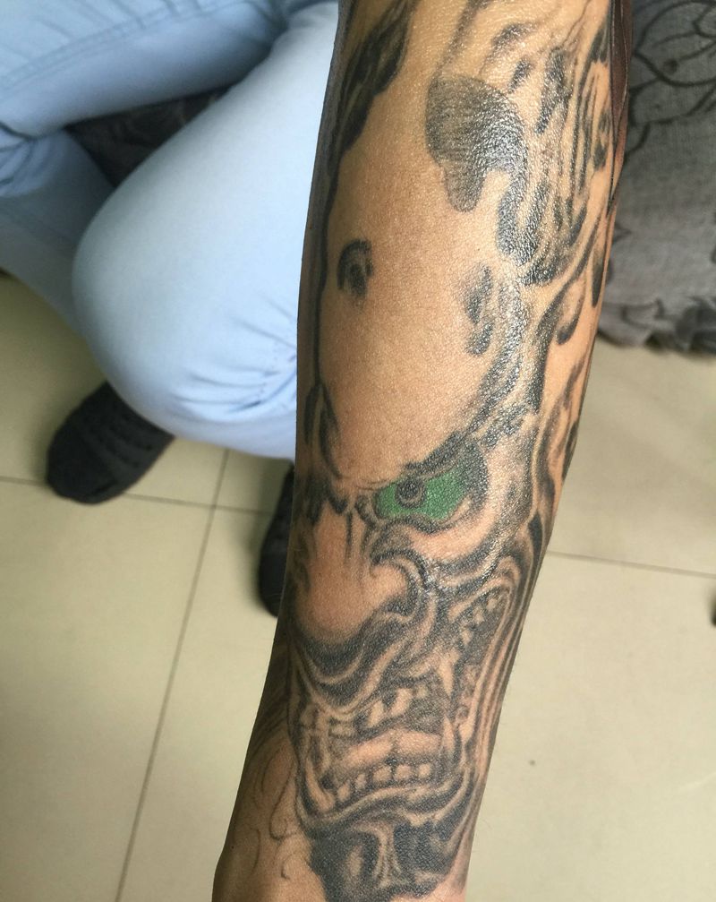 当前位置: 首页 >江苏省无锡市纹身店-林刺青工作室纹身图案>修改失败般若,接鲤鱼花臂。纹身图片_手臂新传统纹身图案