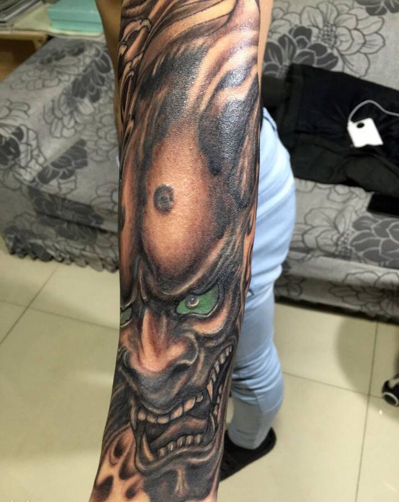 当前位置: 首页 >江苏省无锡市纹身店-林刺青工作室纹身图案>修改失败般若,接鲤鱼花臂。纹身图片_手臂新传统纹身图案