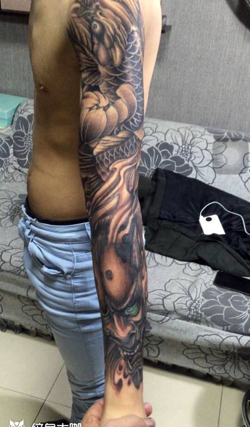 修改失败般若,接鲤鱼花臂。纹身图片_手臂新传统纹身图案