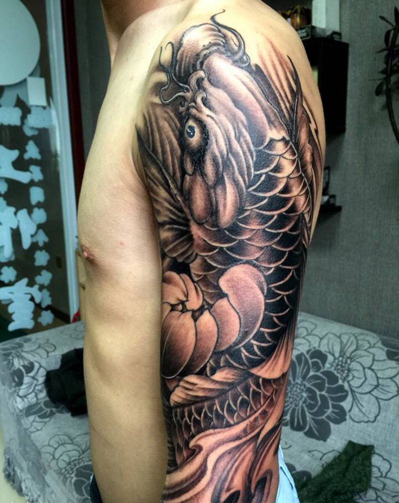 修改失败般若,接鲤鱼花臂。纹身图片_手臂新传统纹身图案