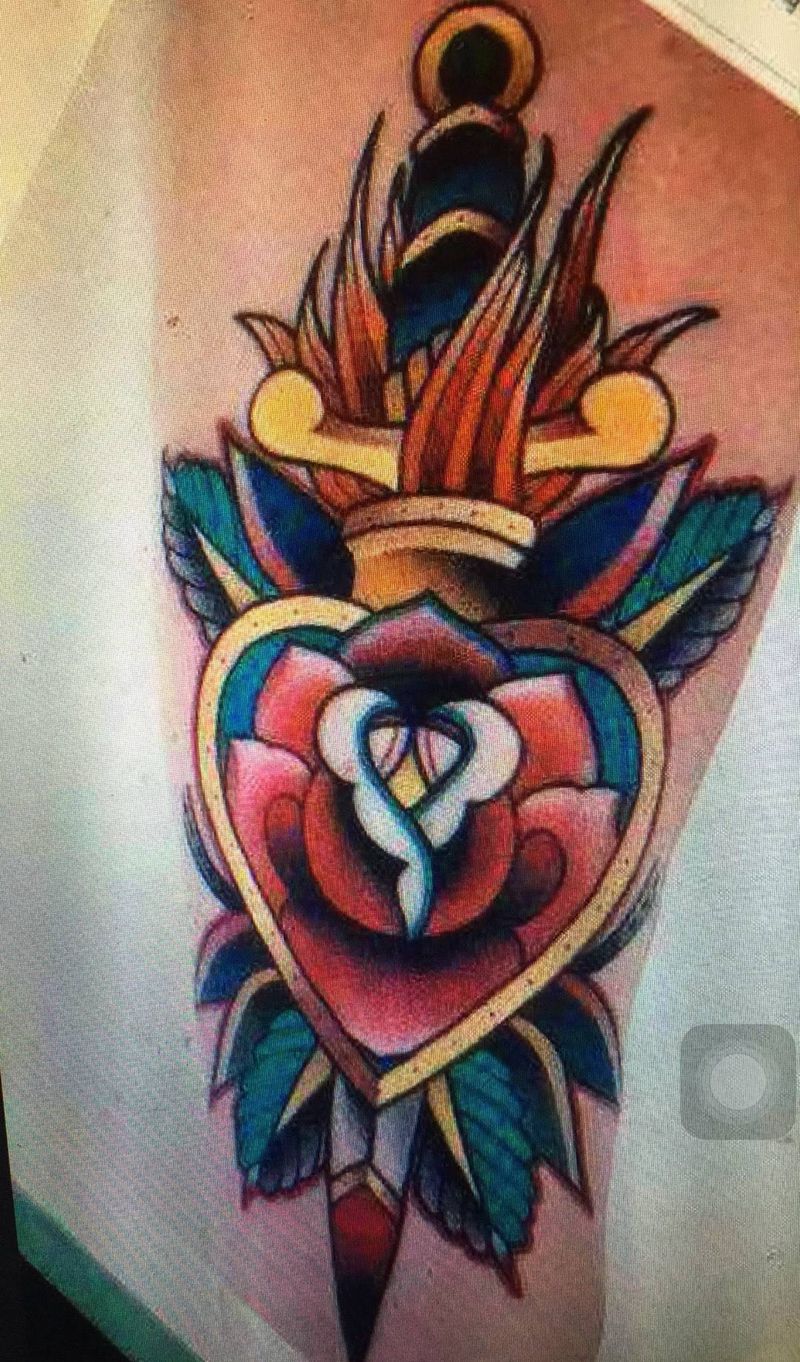 • T包小腿吹火男+阿多福纹身图片_腿部老传统新传统吹火男阿