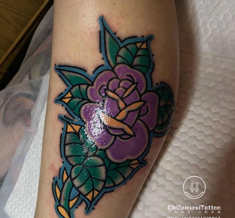 • T网红王老大花腿龙纹身图片_腿部新传统纹身图案
