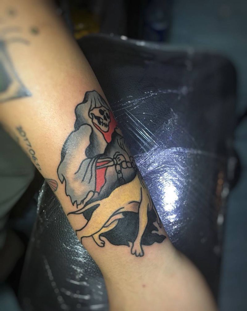 死神牵着大黄纹身图片