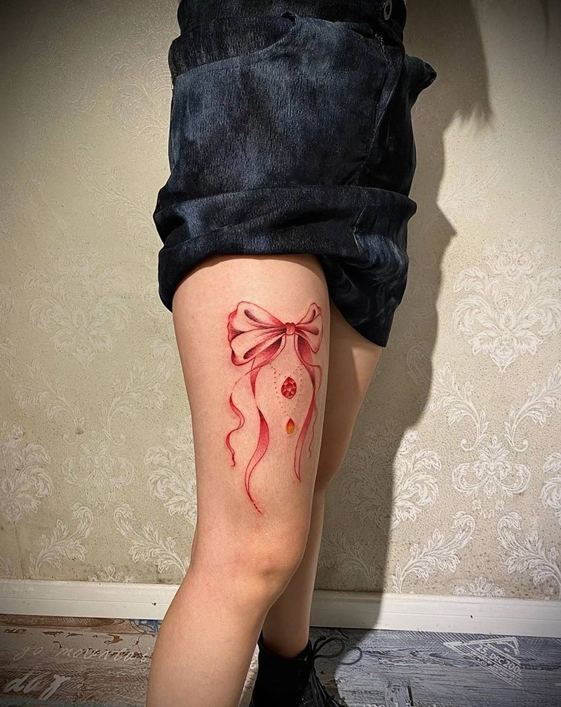 • T网红王老大花腿龙纹身图片_腿部新传统纹身图案