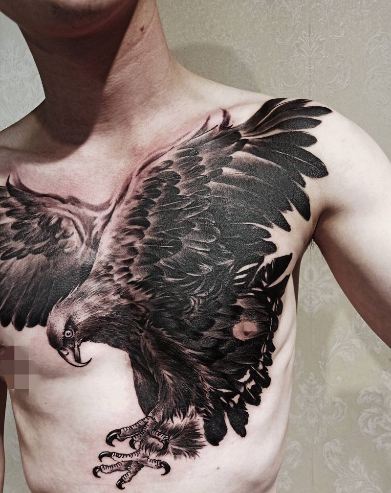 鹰遮盖纹身图片_胸部腹部欧美写实纹身图案