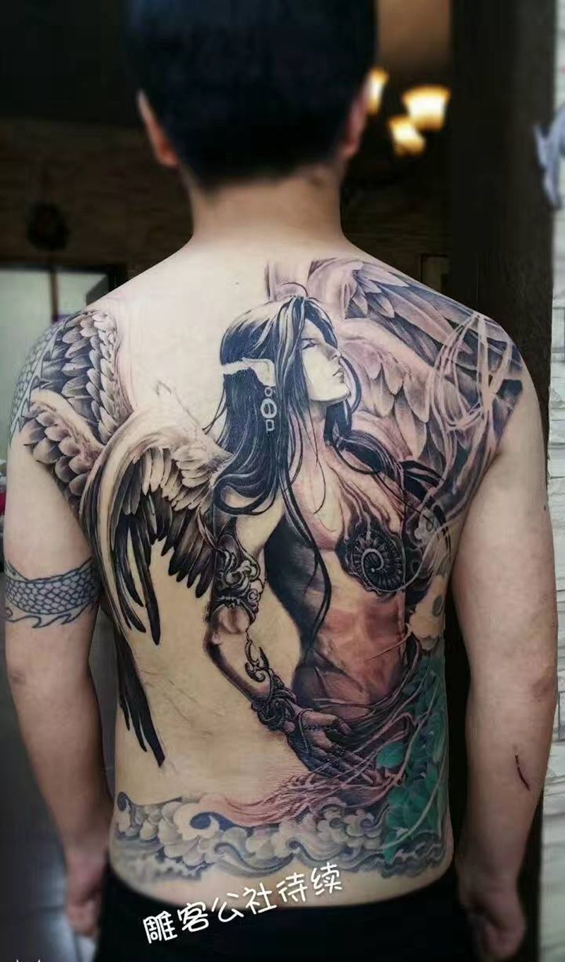 当前位置: 首页 >江苏省无锡市纹身店-无锡雕客公社纹身纹身图案>六翼天使遮盖纹身图片_背部欧美写实纹身图案