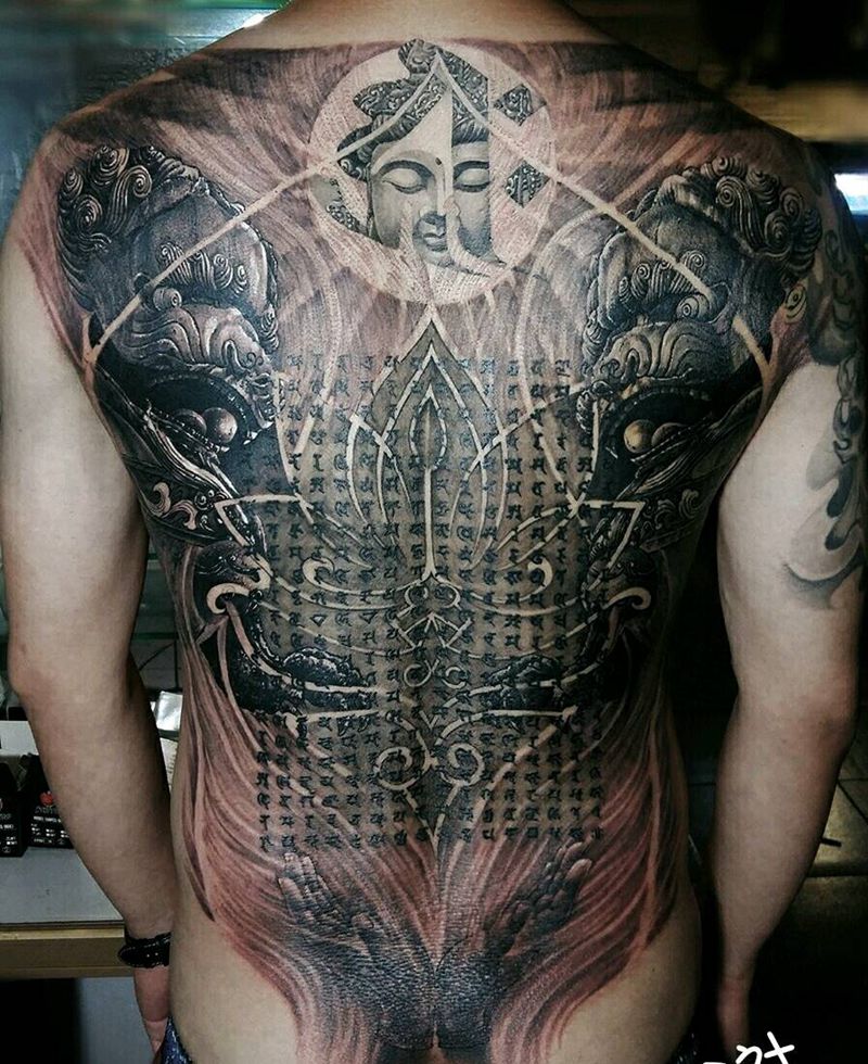 黑灰满背纹身图案