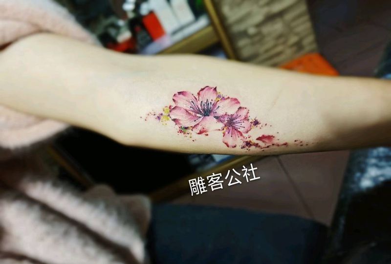 当前位置: 首页 >江苏省无锡市纹身店-无锡雕客公社纹身纹身图案>樱花纹身图片_手臂水彩纹身图案
