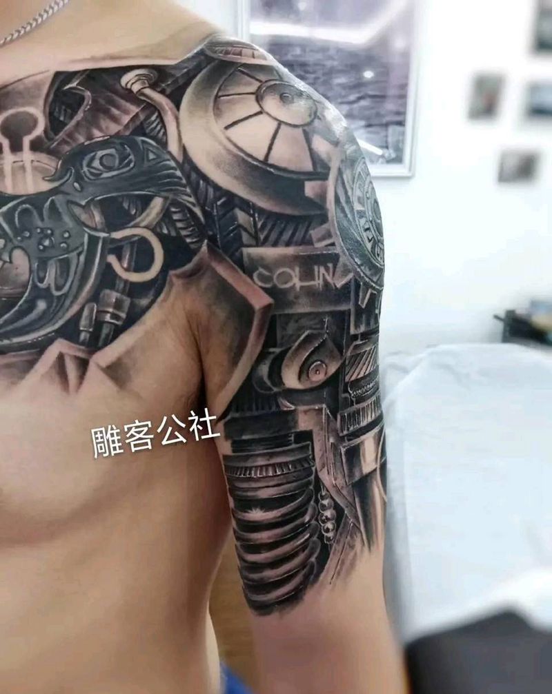 当前位置: 首页 >江苏省无锡市纹身店-无锡雕客公社纹身纹身图案>机械半胛纹身图片_手臂胸部欧美写实纹身图案