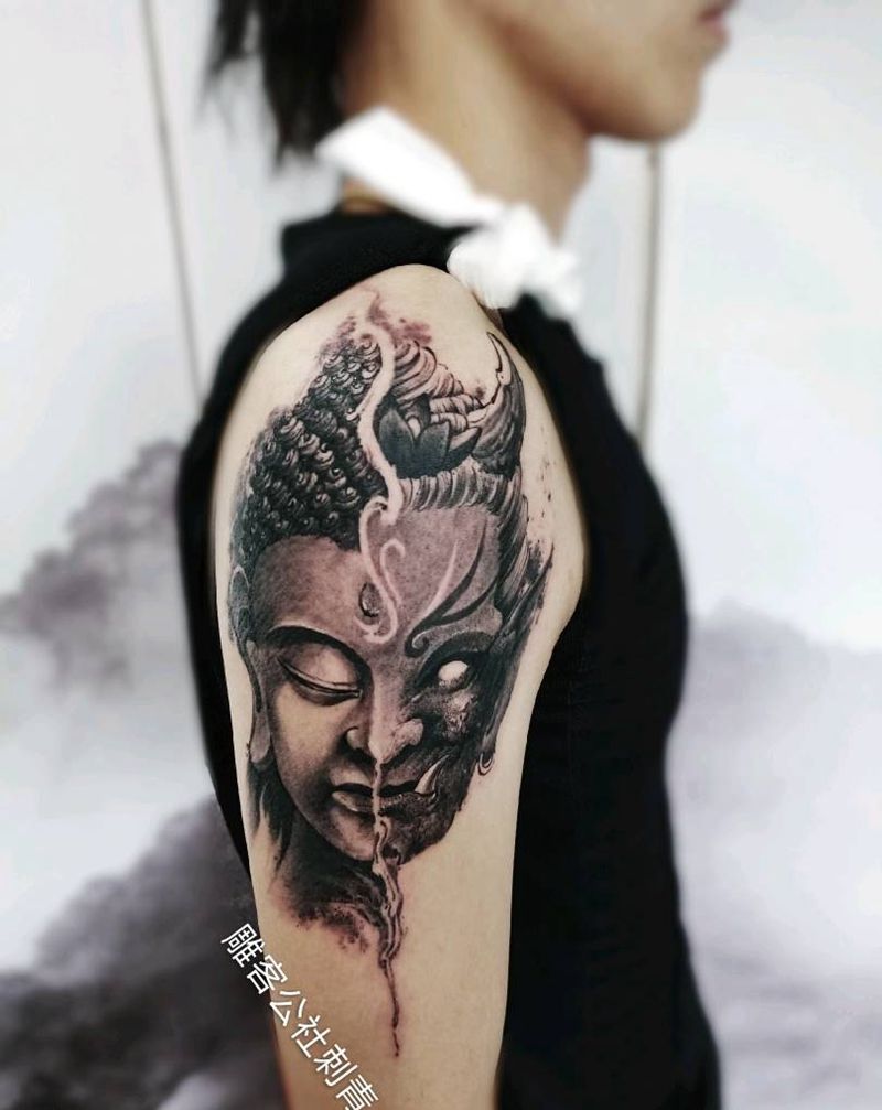 佛与魔纹身图片_手臂水墨新传统纹身图案
