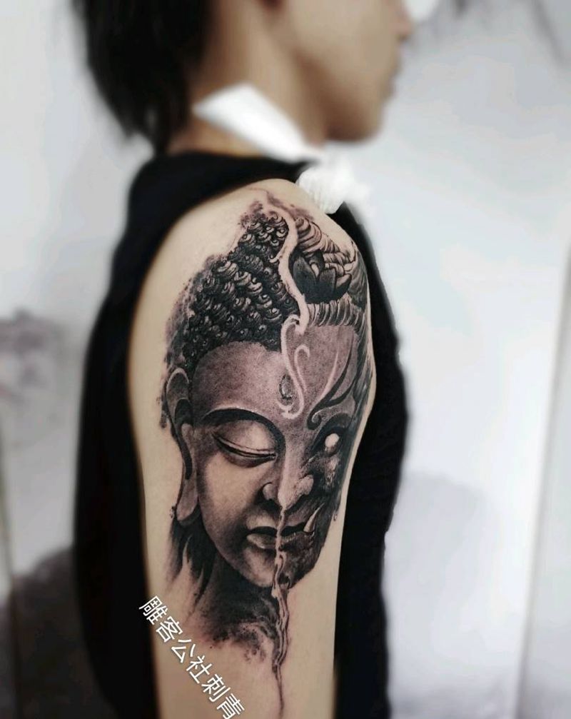 佛与魔纹身图片_手臂水墨新传统纹身图案