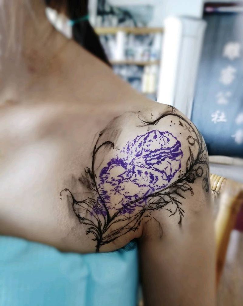 • 女性大花胸纹身_43张霸气漂亮的女性大花胸纹身图案作品