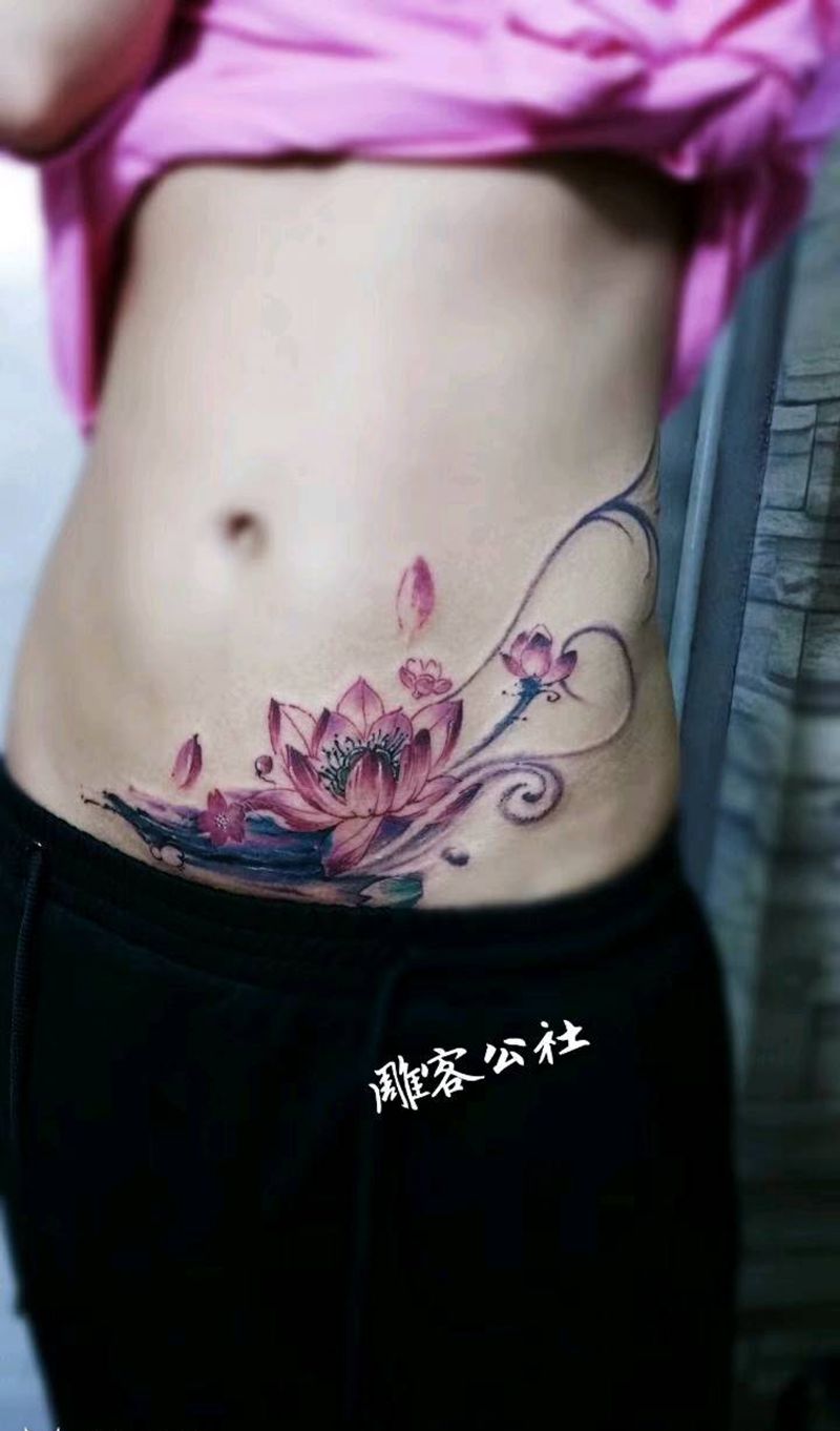 • 时尚性感的腹部莲花纹身图案