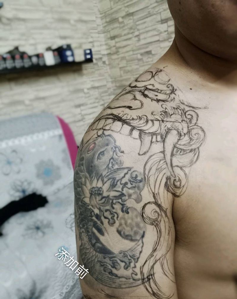 当前位置: 首页 >江苏省无锡市纹身店-无锡雕客公社纹身纹身图案>唐狮 鱼纹身图片_手臂新传统纹身图案