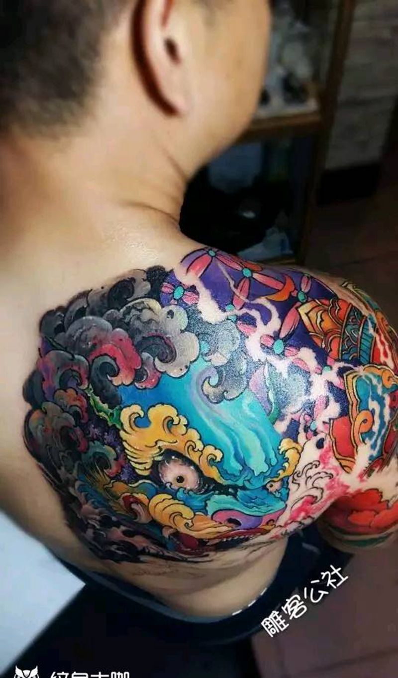 当前位置: 首页 >江苏省无锡市纹身店-无锡雕客公社纹身纹身图案>嘎巴拉+唐狮纹身图片_手臂背部新传统纹身图案