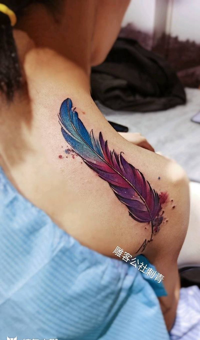 当前位置: 首页 >江苏省无锡市纹身店-无锡雕客公社纹身纹身图案>羽毛纹身图片_背部水彩纹身图案