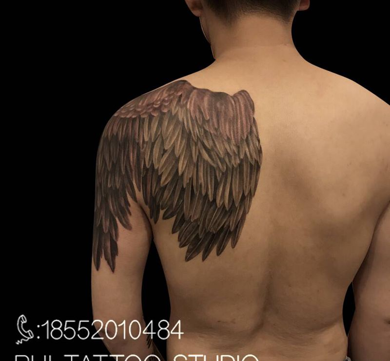 当前位置: 首页 >江苏省无锡市纹身店-睿刺青纹身图案>半背翅膀纹身图片_手臂背部纹身图案