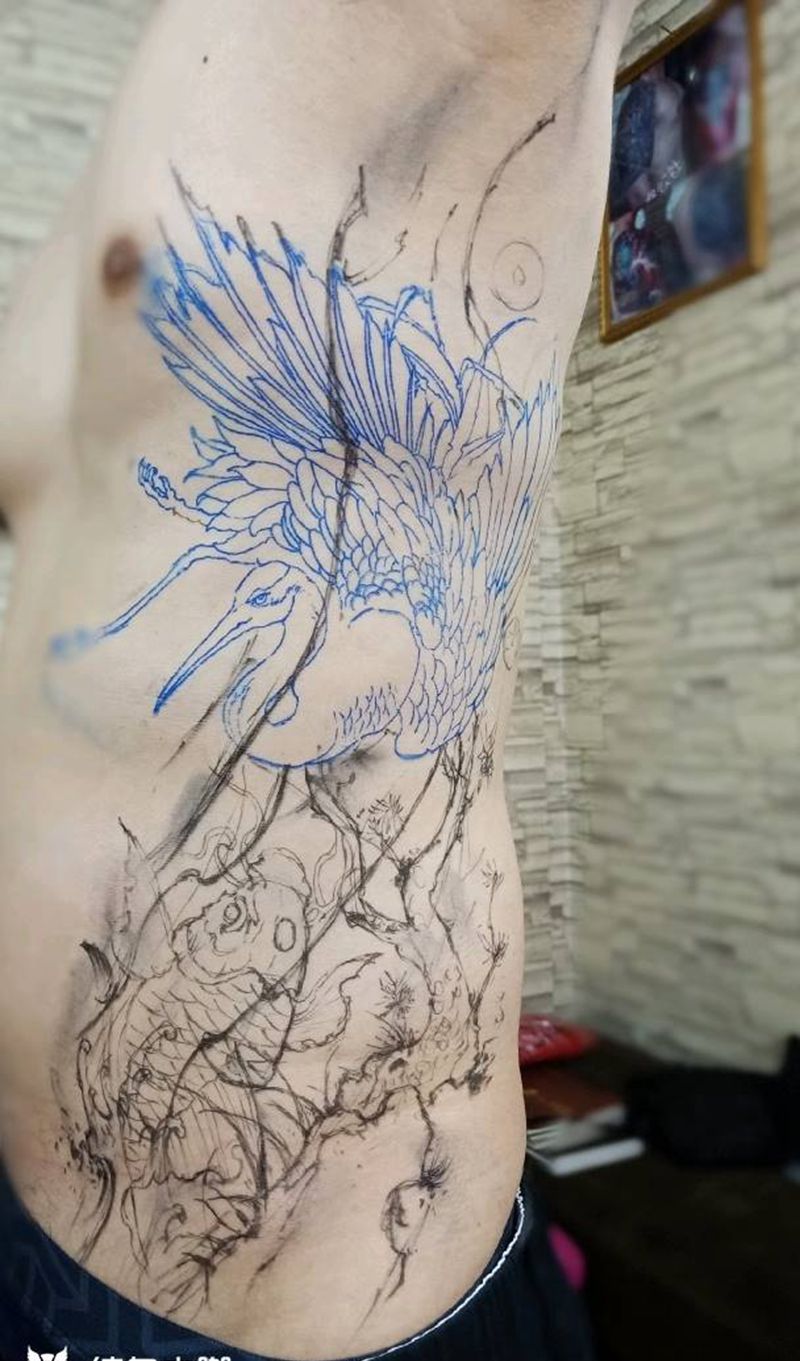 当前位置: 首页 >江苏省无锡市纹身店-无锡雕客公社纹身纹身图案>鹤与鱼纹身图片_腰部腹部新传统水墨纹身图案