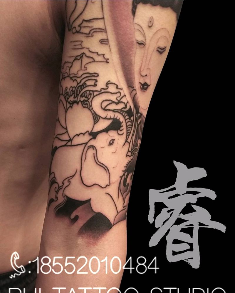 一组15张莲花纹身手
