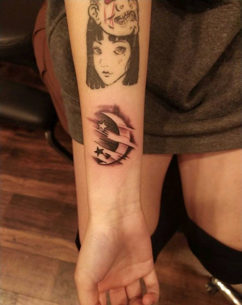 情侣纹身完成富江非本人作品纹身图片_手臂水墨纹身图案