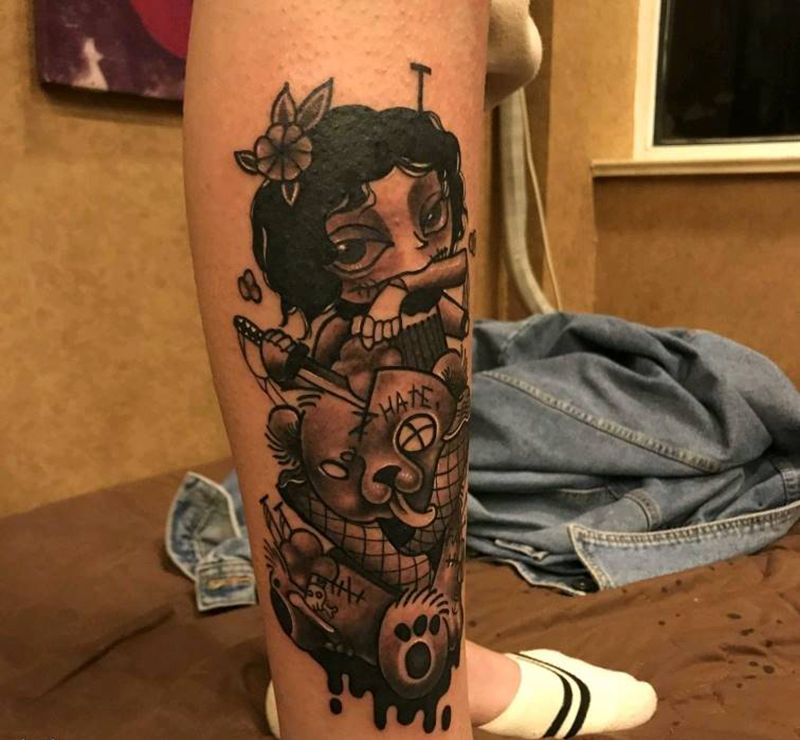 小腿布偶完成纹身图片_腿部New School纹身图案