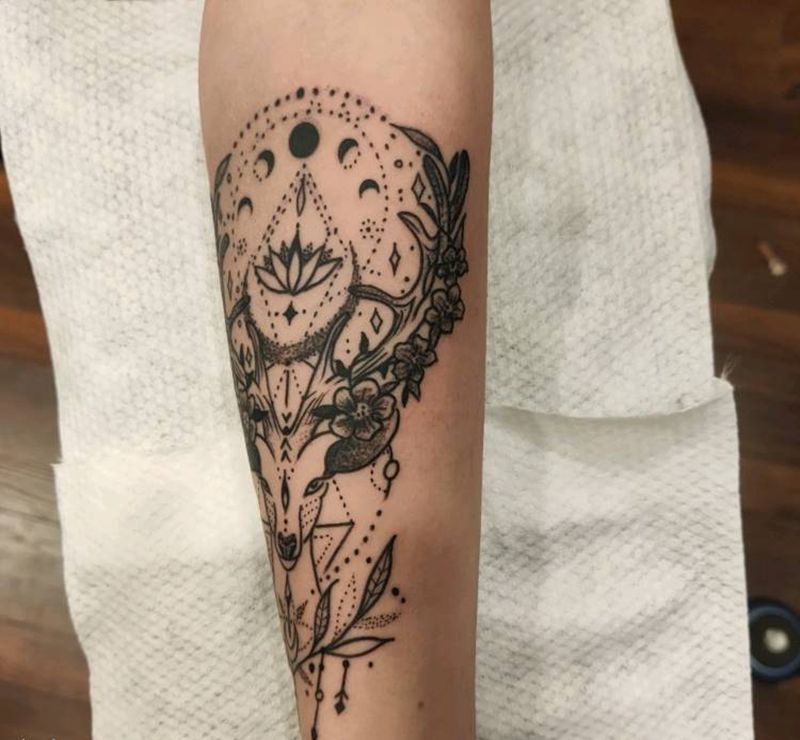 点刺麋鹿纹身图片_手部点刺纹身图案
