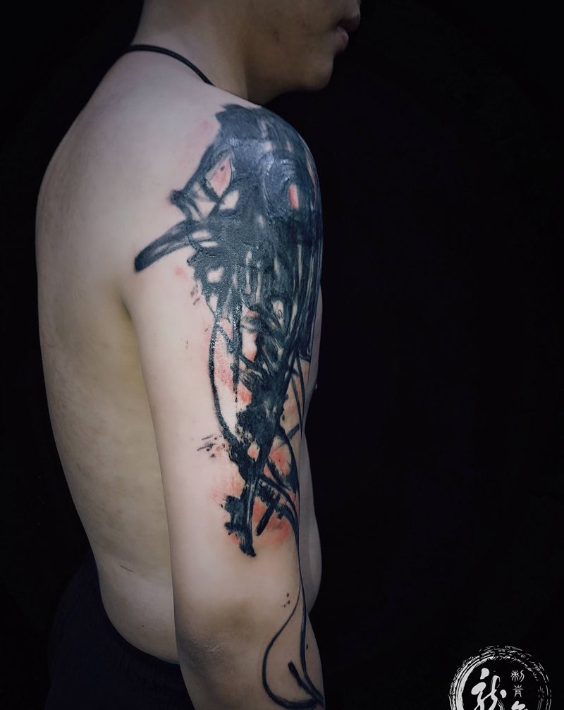 当前位置: 首页 >江苏省无锡市纹身店-无锡龙舞刺青纹身工作室纹身图案>你猜纹身图片_手臂水墨纹身图案