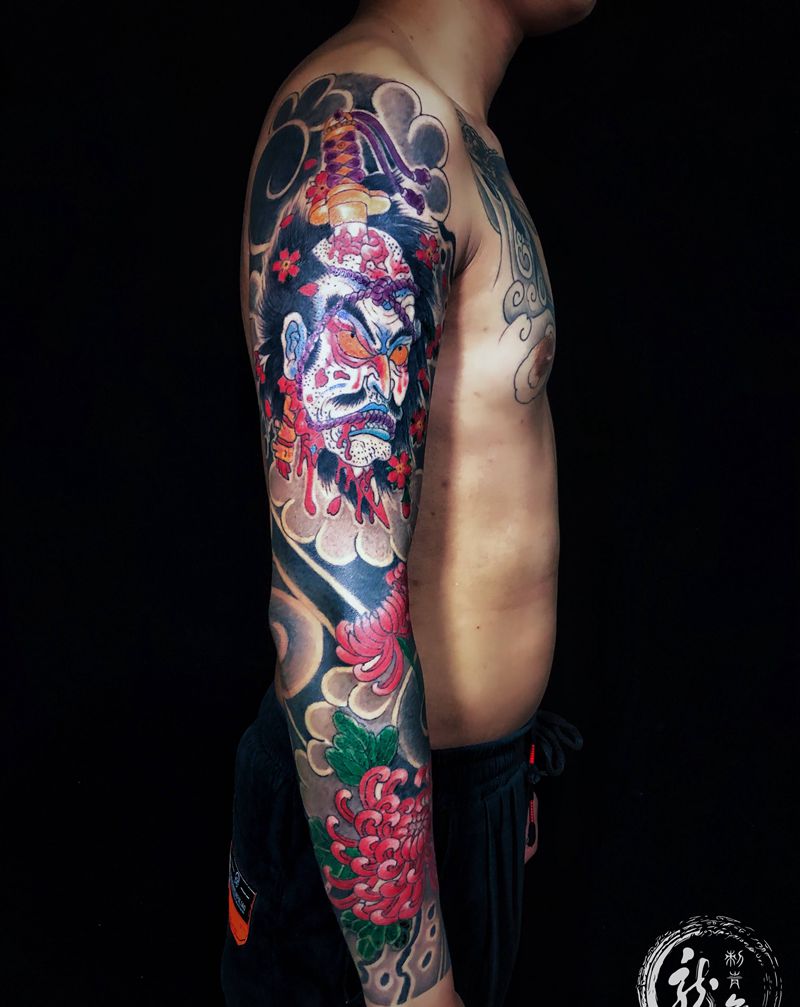 当前位置: 首页 >江苏省无锡市纹身店-无锡龙舞刺青纹身工作室纹身图案>双花臂纹身图片_手臂胸部老传统新传统纹身图案