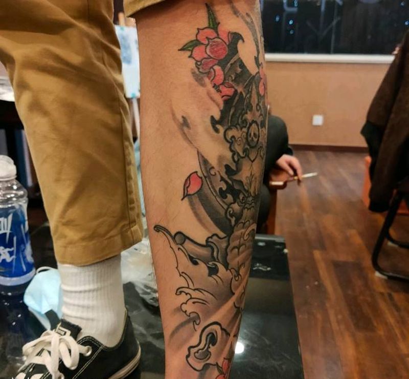 • T网红王老大花腿龙纹身图片_腿部新传统纹身图案