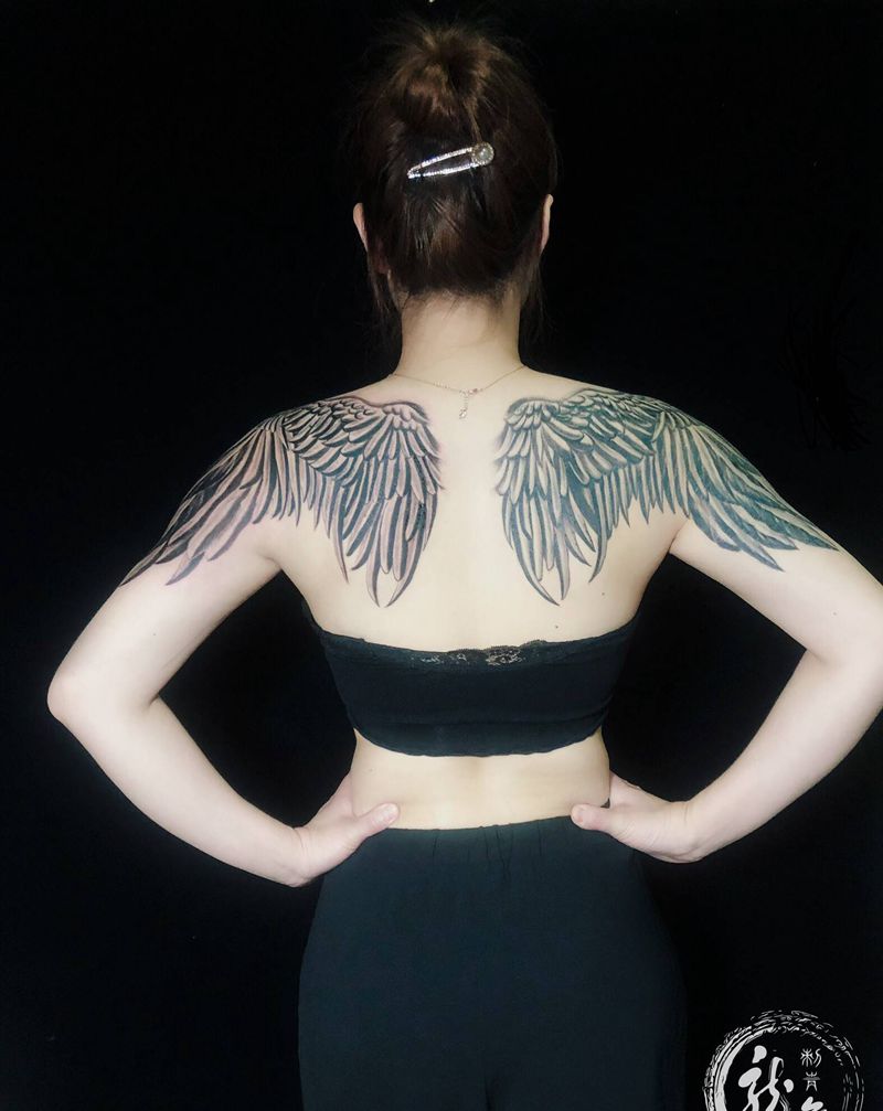 菲爷纹身图片_背部肩部欧美写实纹身图案