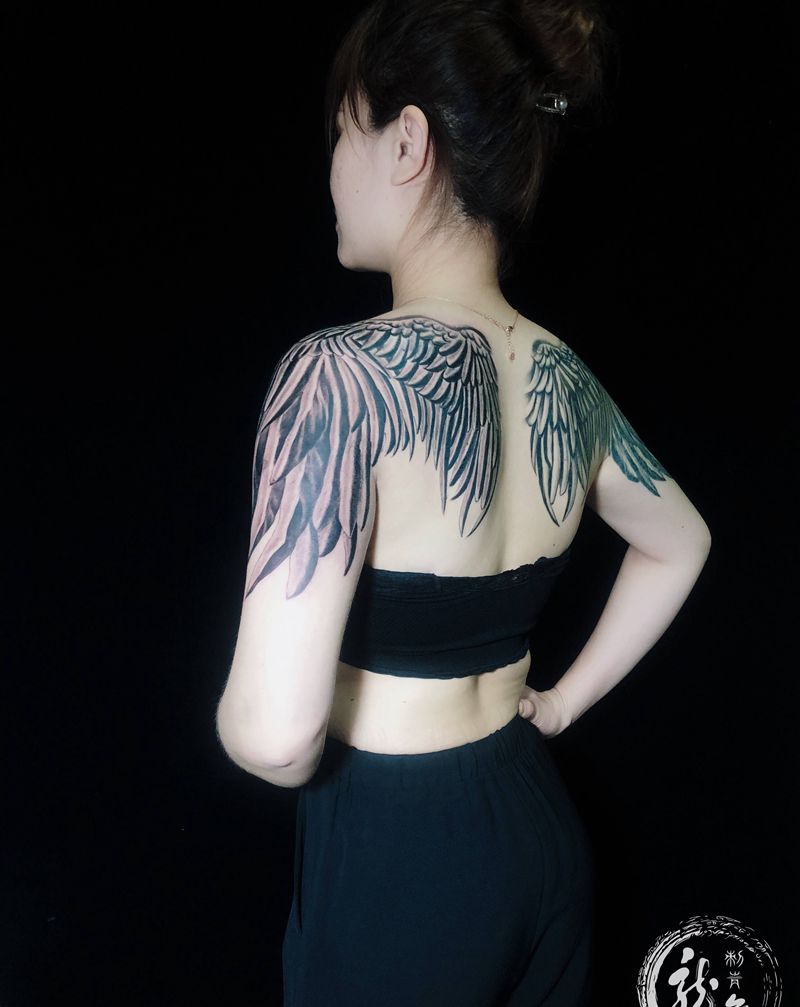 菲爷纹身图片_背部肩部欧美写实纹身图案