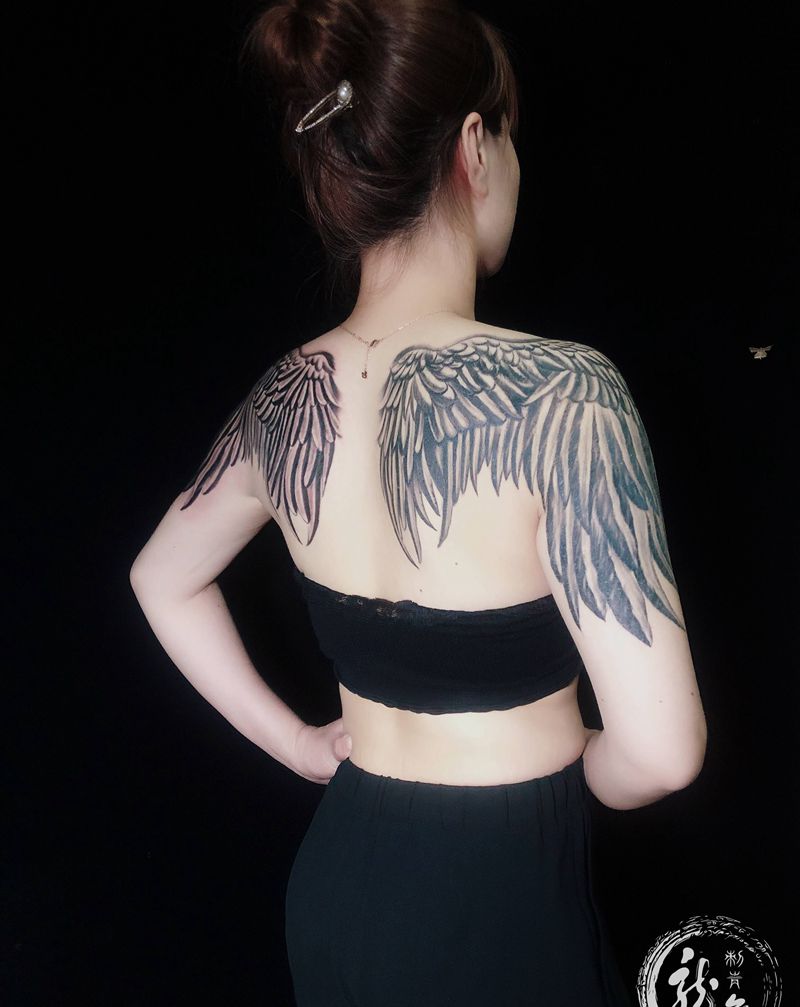 菲爷纹身图片_背部肩部欧美写实纹身图案
