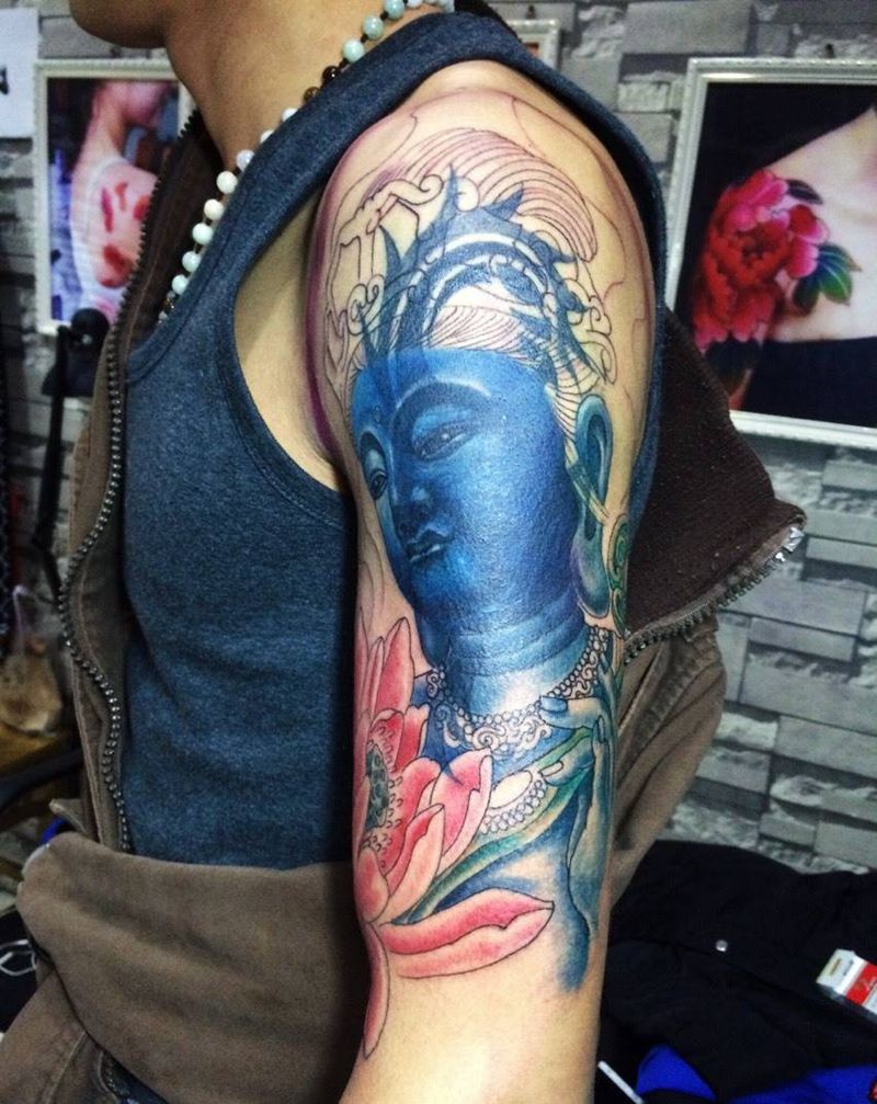 当前位置: 首页 >江苏省无锡市纹身店-无锡龙舞刺青纹身工作室纹身图案>佛法无边纹身图片_肩部手臂传统人物纹身图案