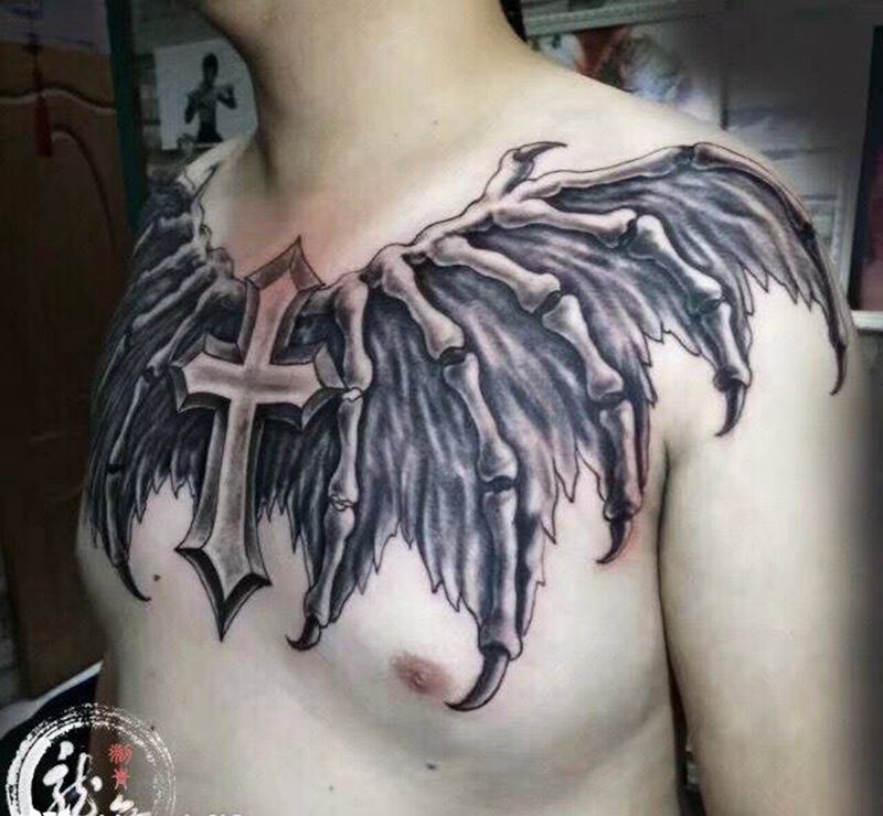 魔法翅展纹身图片_成品胸部欧美原创纹身图案