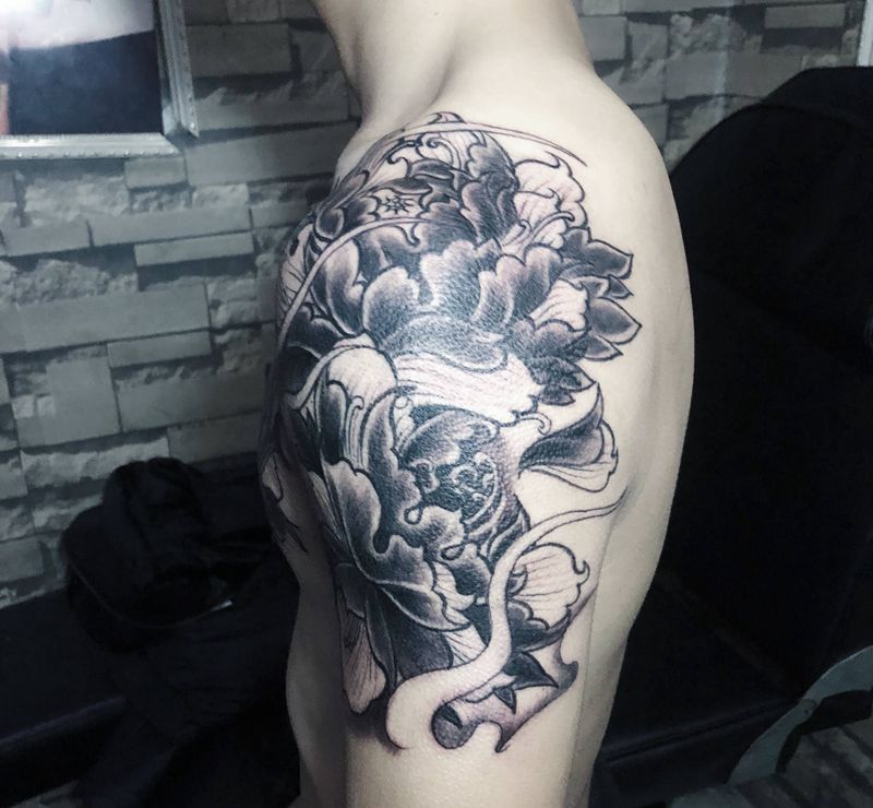 • 纹身吧推荐的披肩图腾半胛纹身图案作品展示