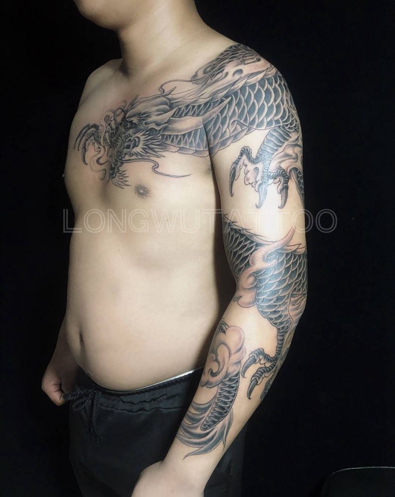 当前位置: 首页 >江苏省无锡市纹身店-无锡龙舞刺青纹身工作室纹身图案>不需介绍纹身图片_手臂胸部新传统纹身图案