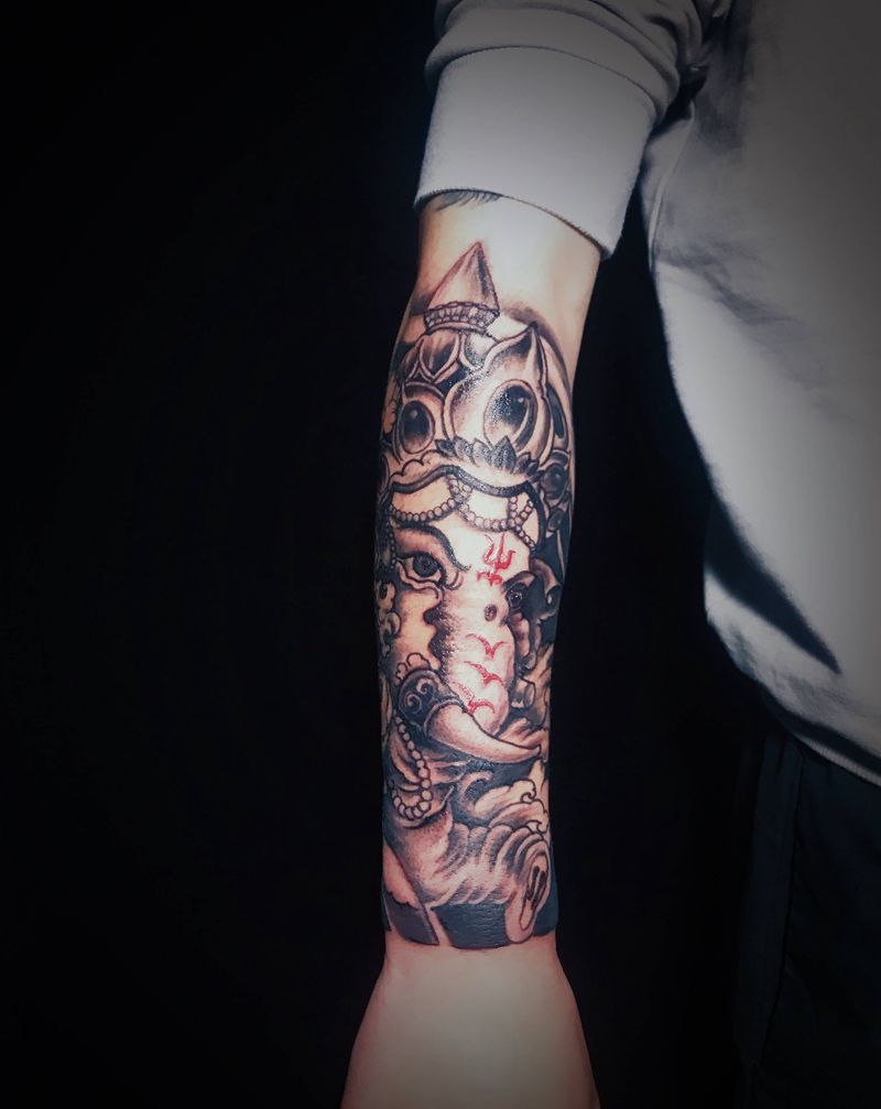 2⃣️象神纹身图片_手臂新传统纹身图案