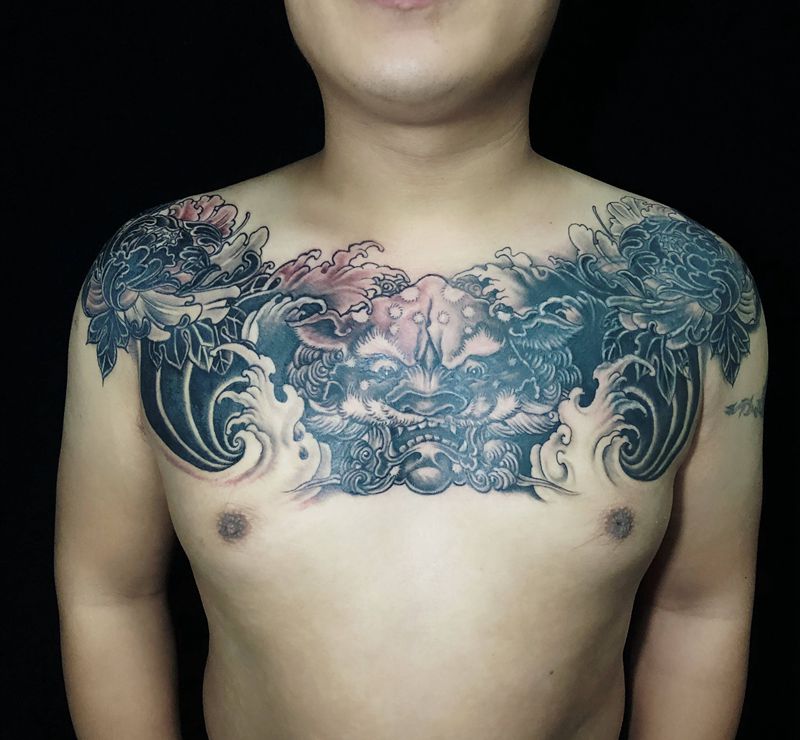 当前位置: 首页 >江苏省无锡市纹身店-无锡龙舞刺青纹身工作室纹身图案>富贵狮花胸纹身图片_胸部纹身图案