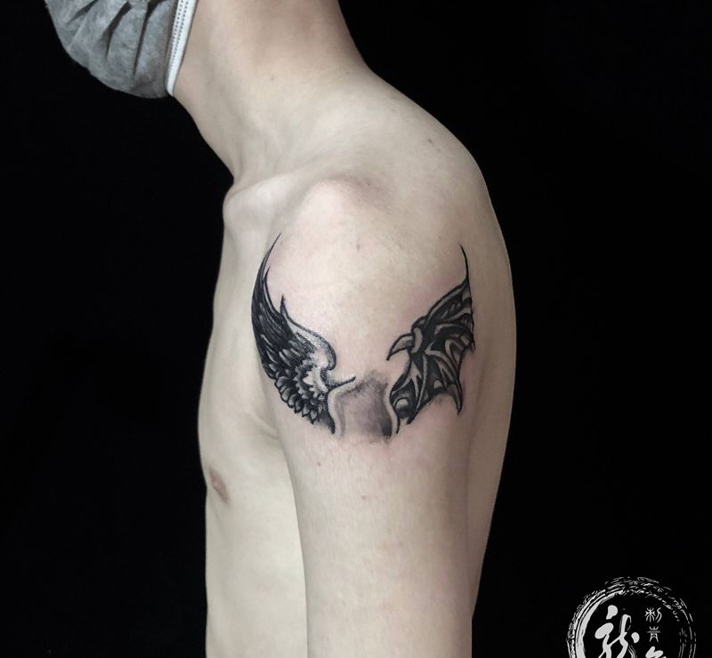 • 纹身吧推荐的披肩图腾半胛纹身图案作品展示