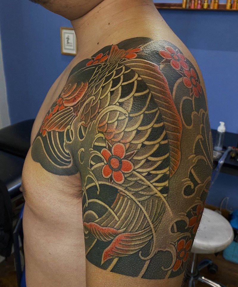 当前位置: 首页 >江苏省无锡市纹身店-浪客纹身工作室纹身图案>鲤鱼樱花纹身纹身图片_背部老传统纹身图案