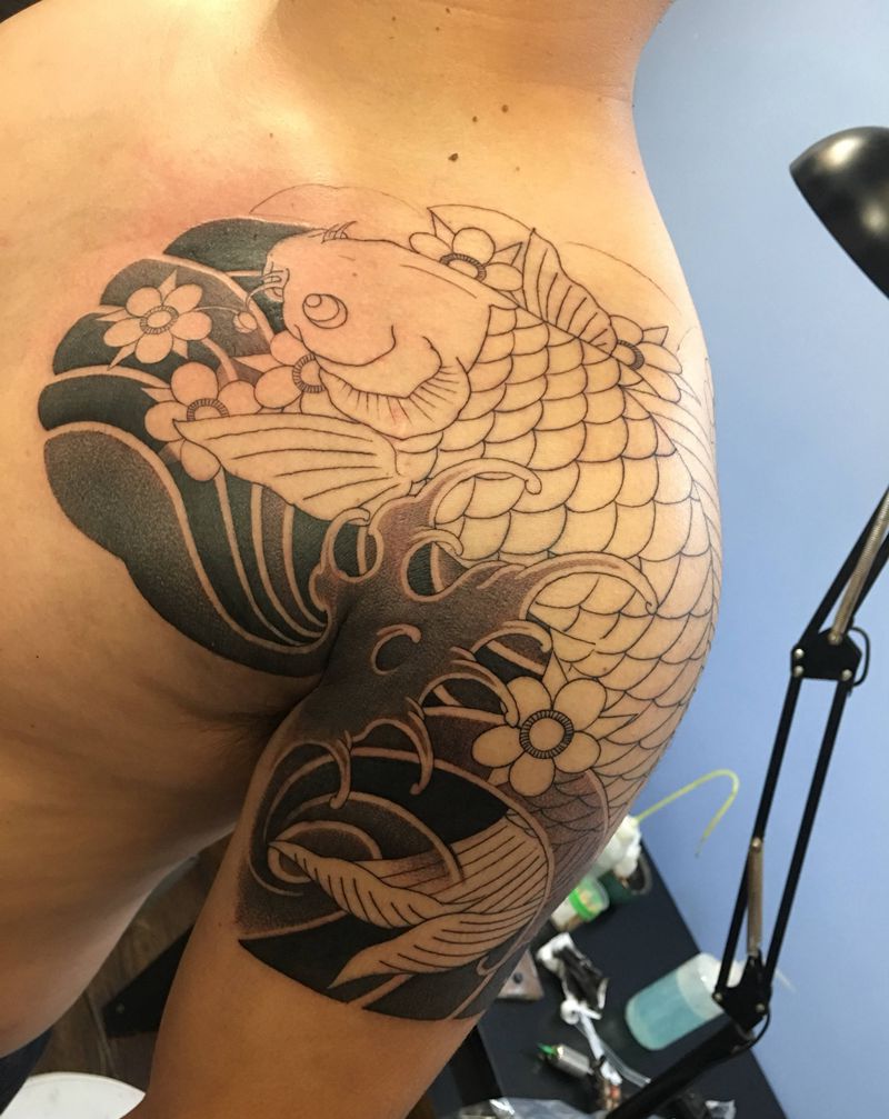 当前位置: 首页 >江苏省无锡市纹身店-浪客纹身工作室纹身图案>鲤鱼半甲纹身图片_老传统纹身图案