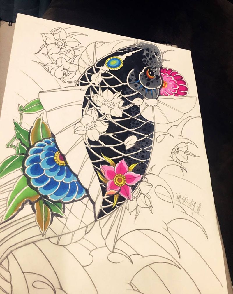 当前位置: 首页 >江苏省无锡市纹身店-浪客纹身工作室纹身图案>锦鲤未完纹身图片_手稿传统动物纹身图案