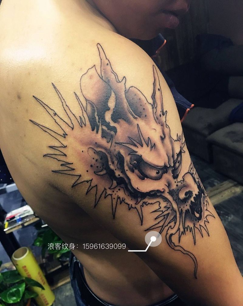 • 纹身吧推荐的披肩图腾半胛纹身图案作品展示