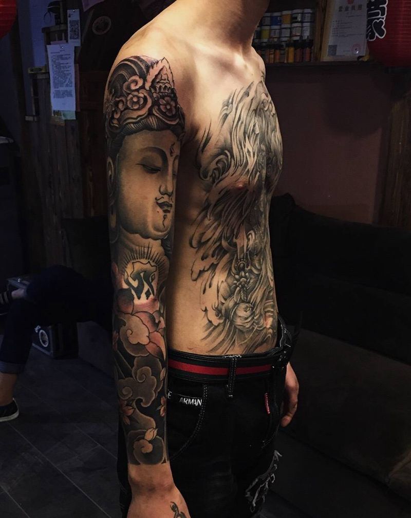 当前位置: 首页 >江苏省无锡市纹身店-浪客纹身工作室纹身图案>佛花臂纹身图片